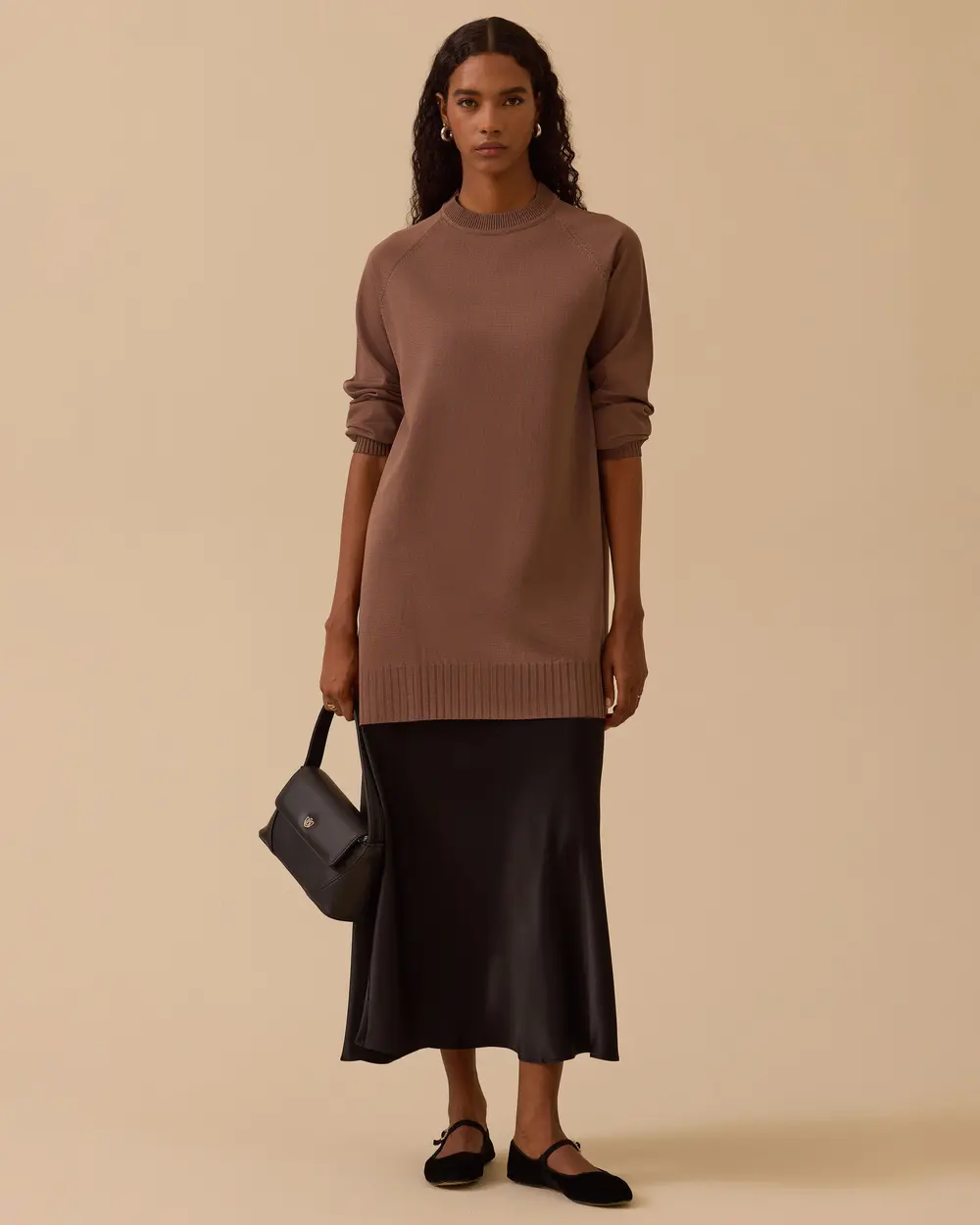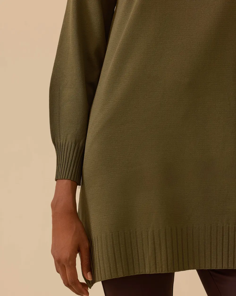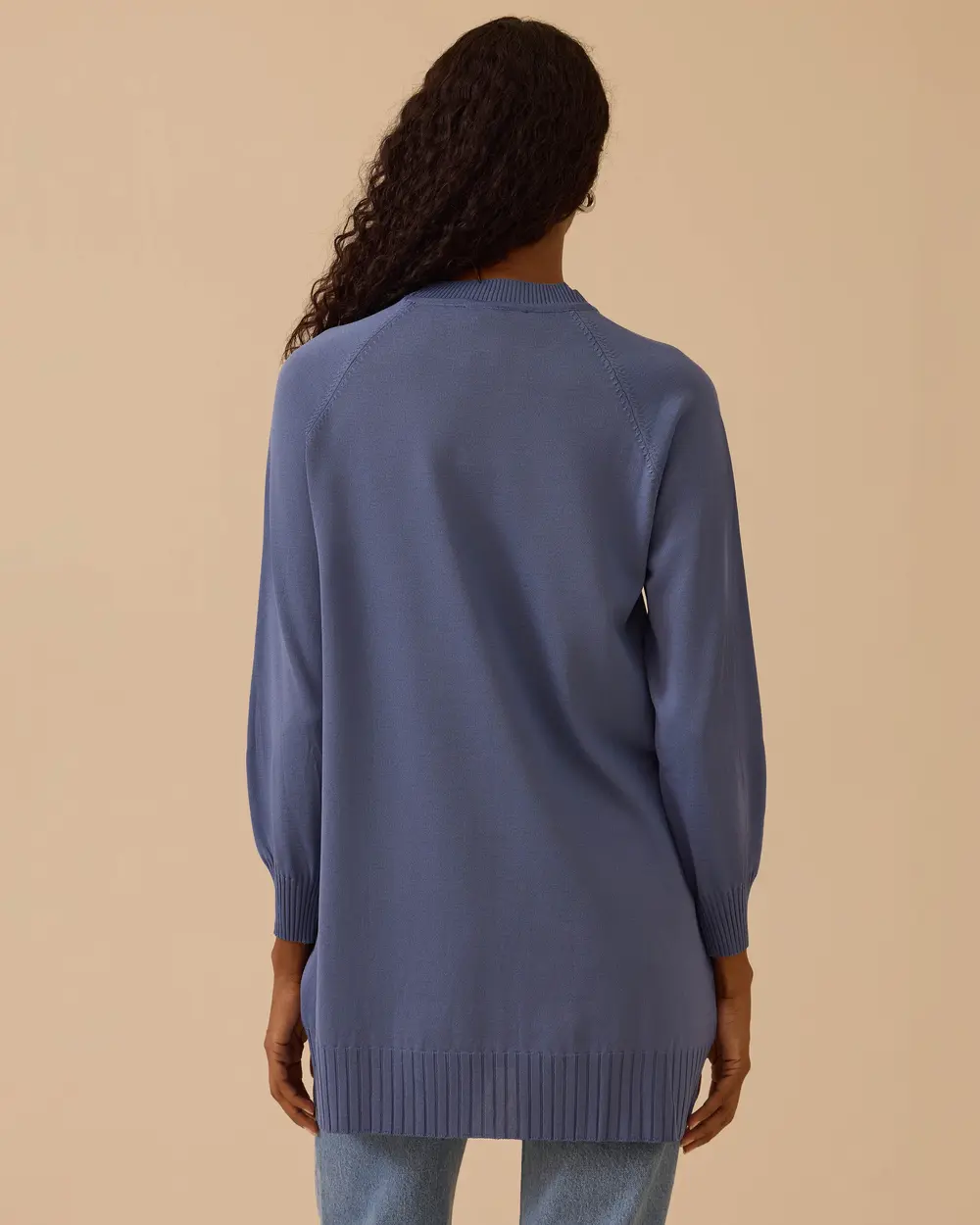Uzun Kollu Basic Triko Tunik, rahat kalıp, bisiklet yaka ve ribanalı detaylarıyla günlük şıklık sunar.