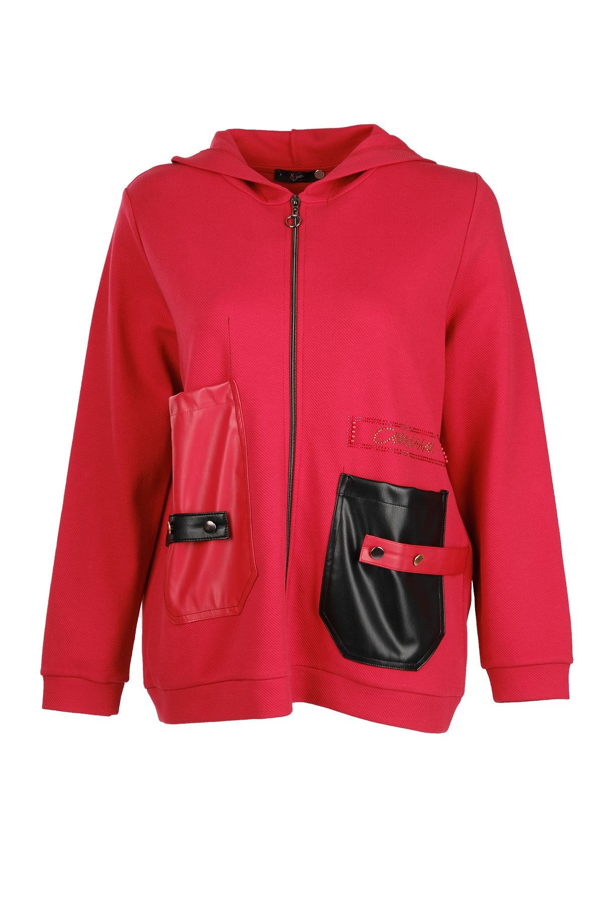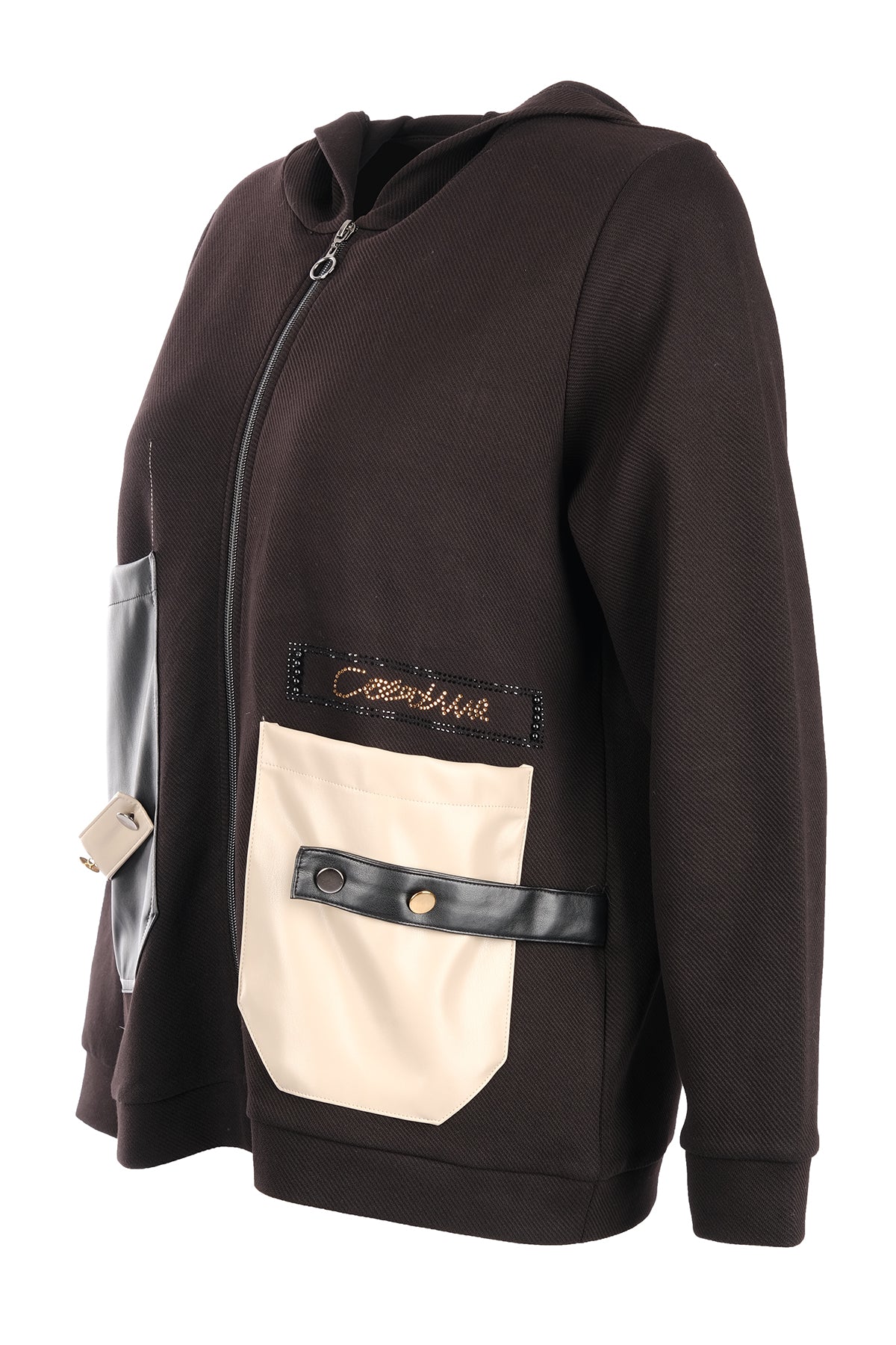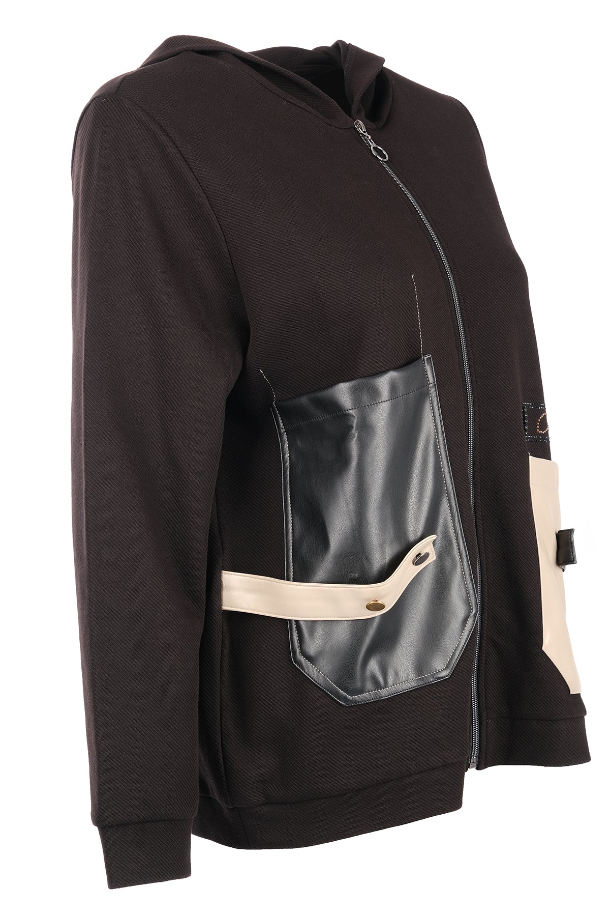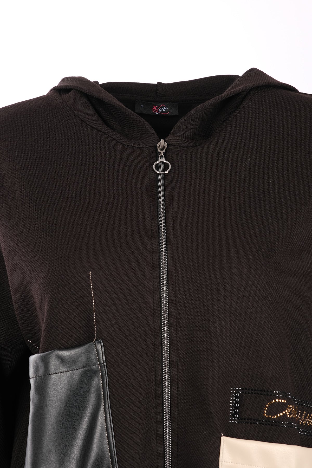Vedi-bb Oversize Kapüşonlu Fermuarlı Cep Detaylı Kadın Ceket - Minimalist Streetwear