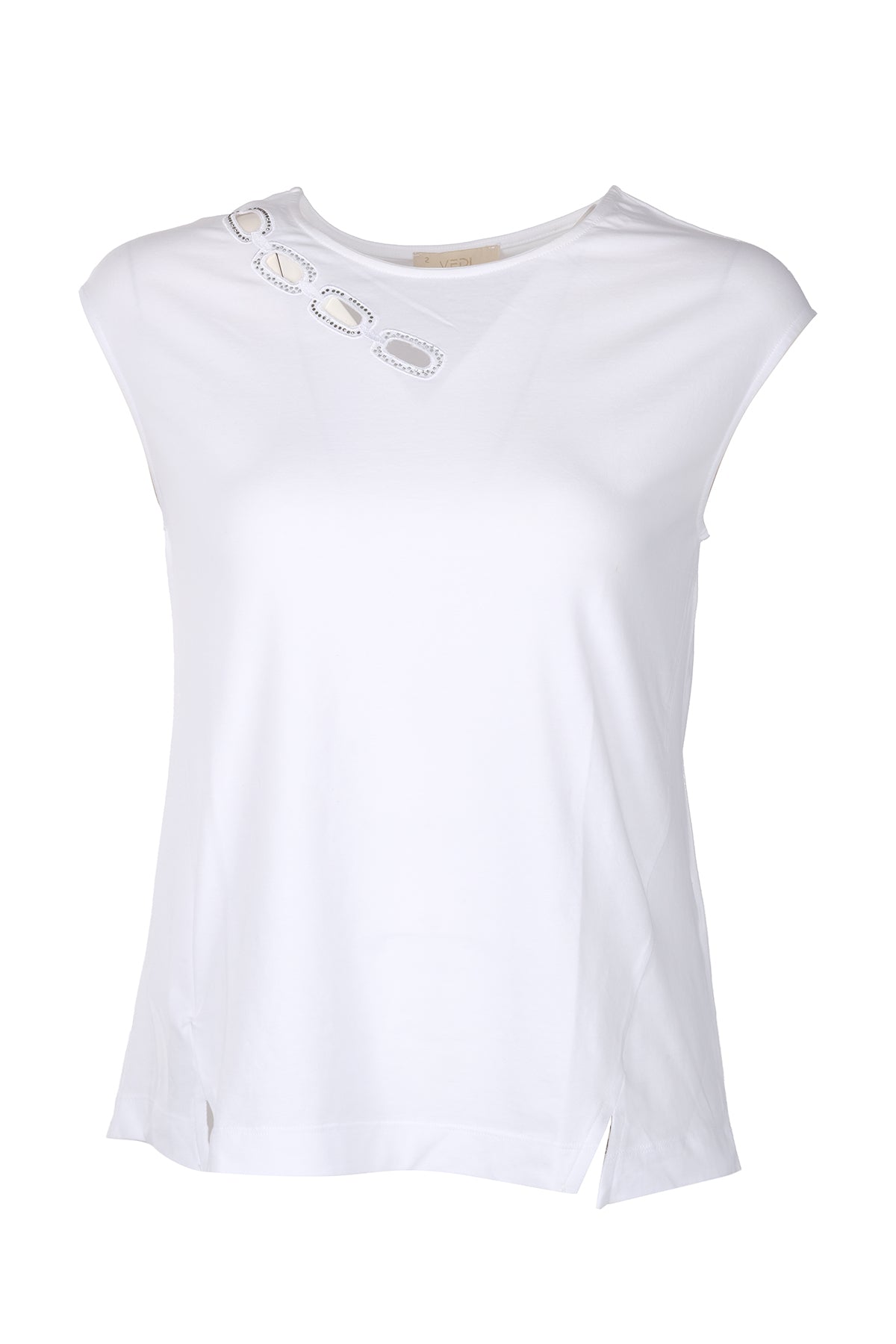 Vedi Minimalist Oversize Kadın Tişört - Taş Detaylı Kısa Kol