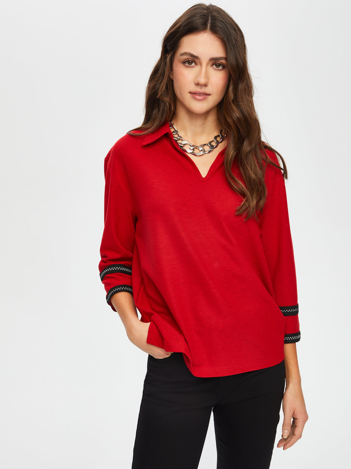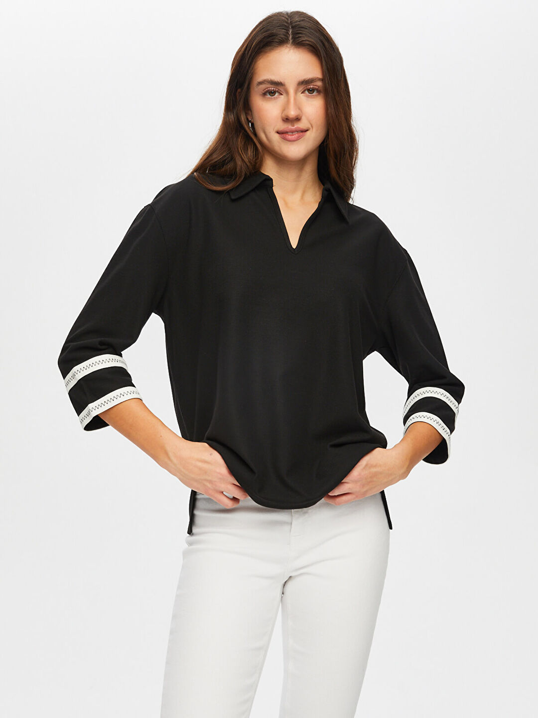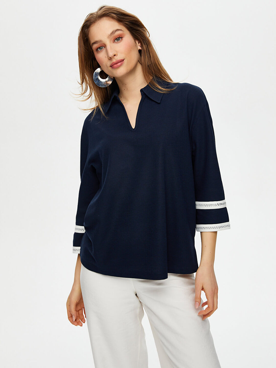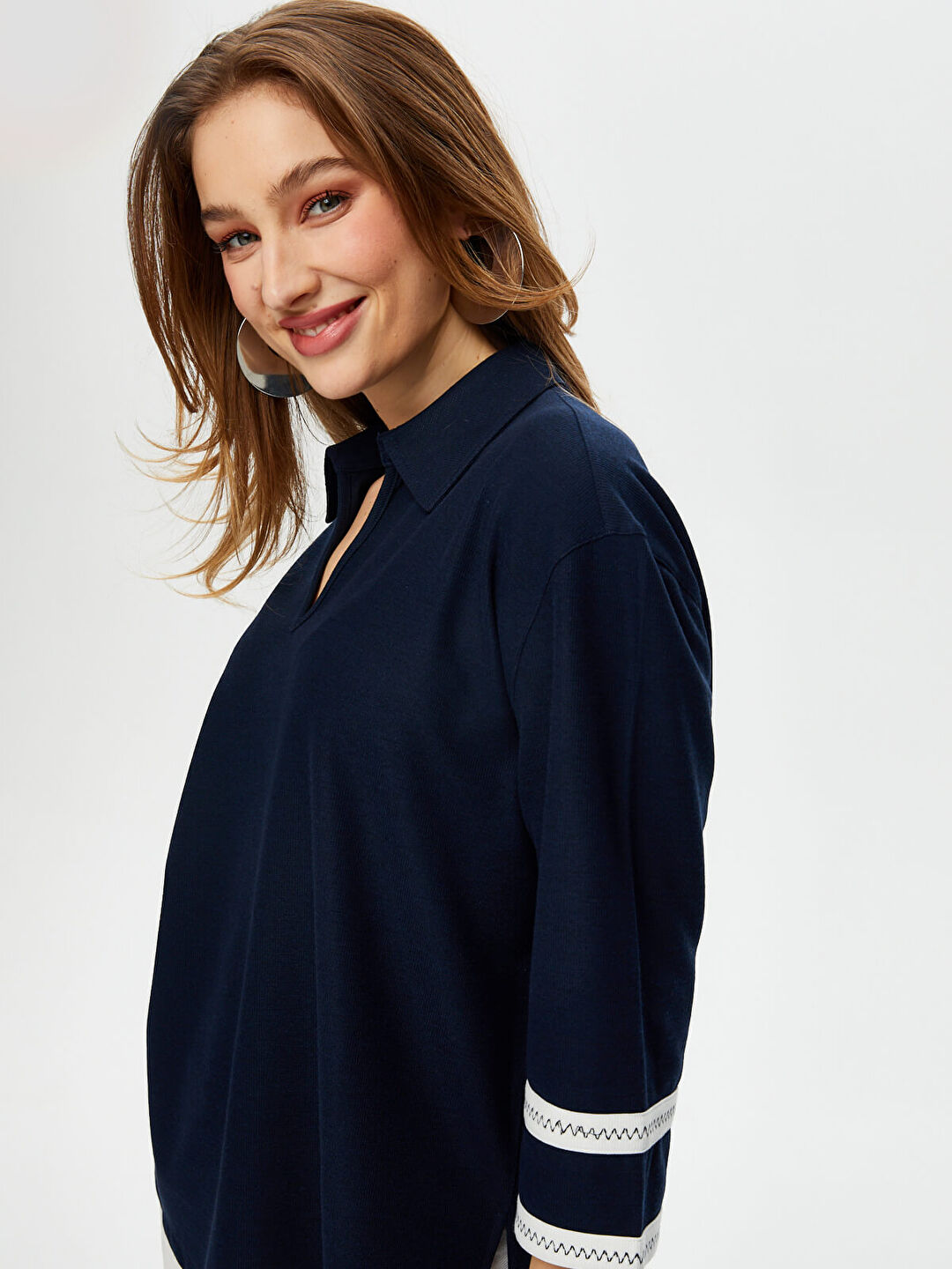 Zigzag Şeritli Polo Yaka Örme Bluz Faik Sönmez