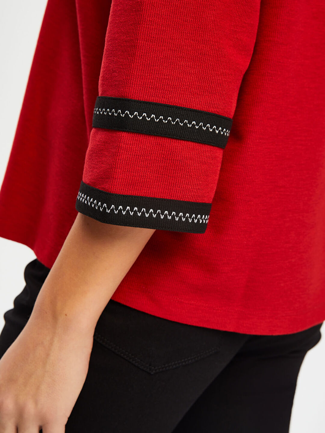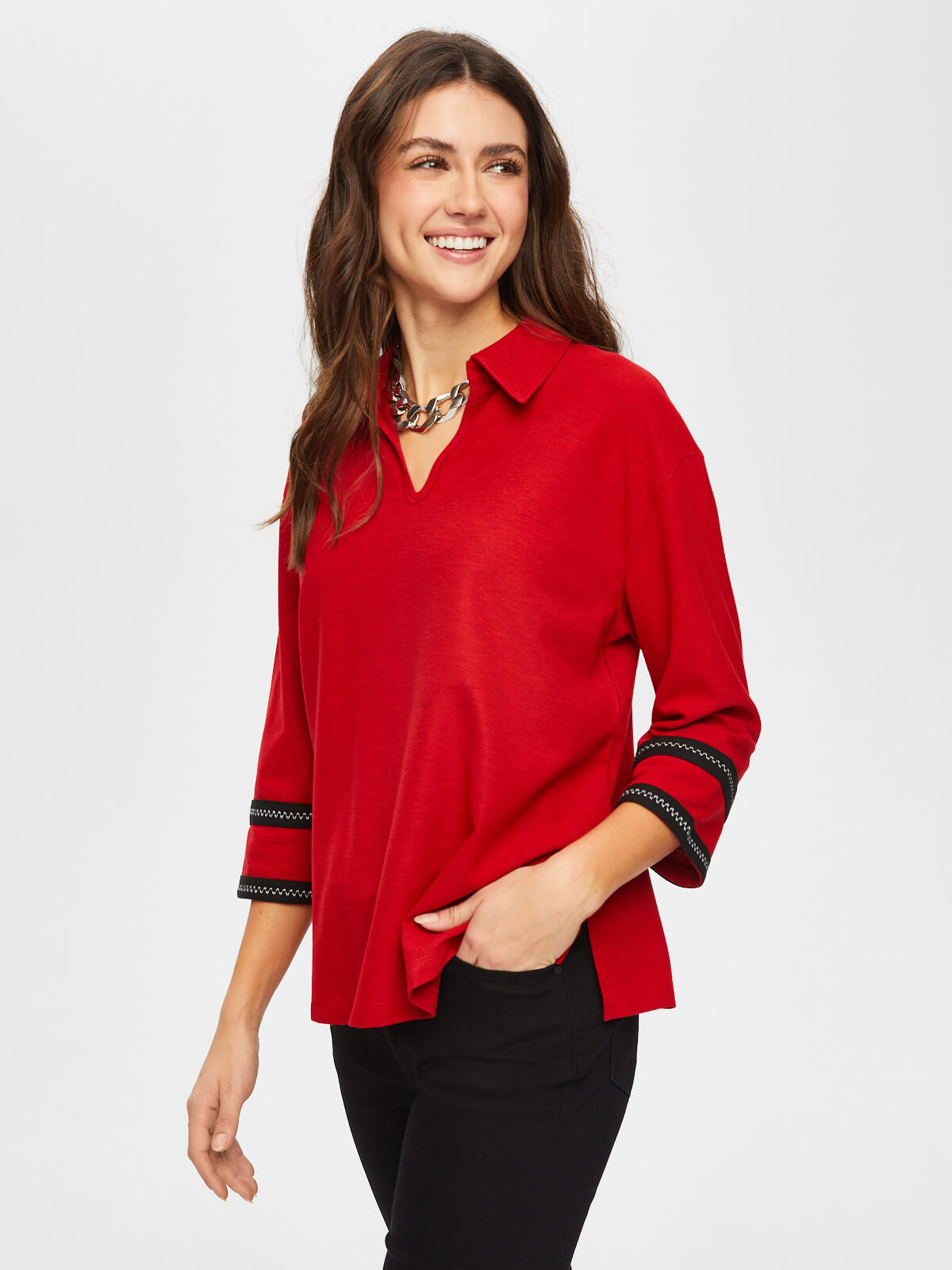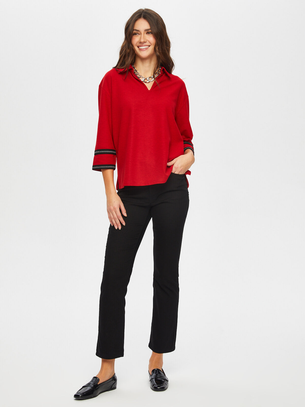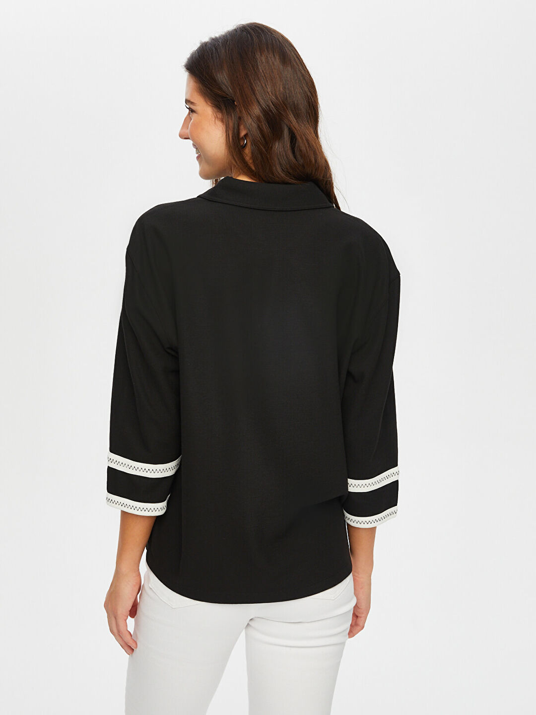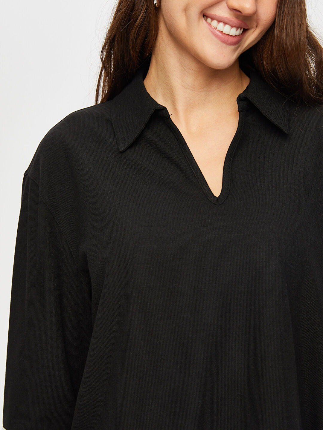 Zigzag Şeritli Polo Yaka Örme Bluz Faik Sönmez
